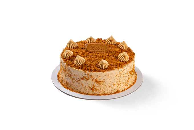 Chocolate cake with a silky lotus biscoff spread and crumbs.